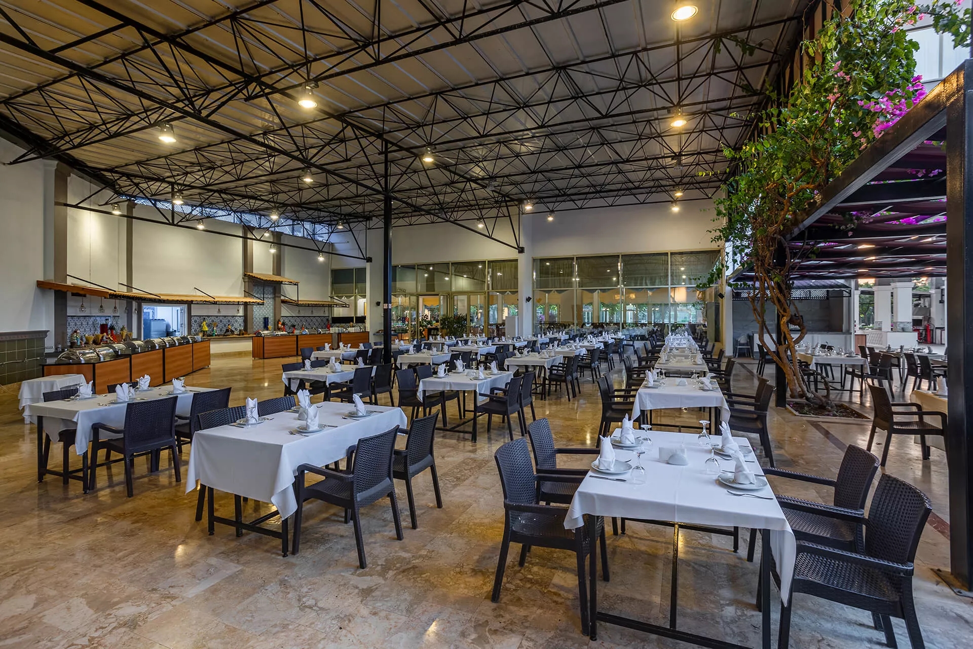 Ana restaurantımız otelimizin ana binasında 400 kişilik kapasiteye sahiptir. Türk ve dünya mutfaklarının özenle seçilmiş menüleriyle sabah kahvaltısı, geç kahvaltı, öğle yemeği ve akşam yemeğiniz de unutulmaz lezzet şöleni yaşayacağınız bir tatil sunuyor.