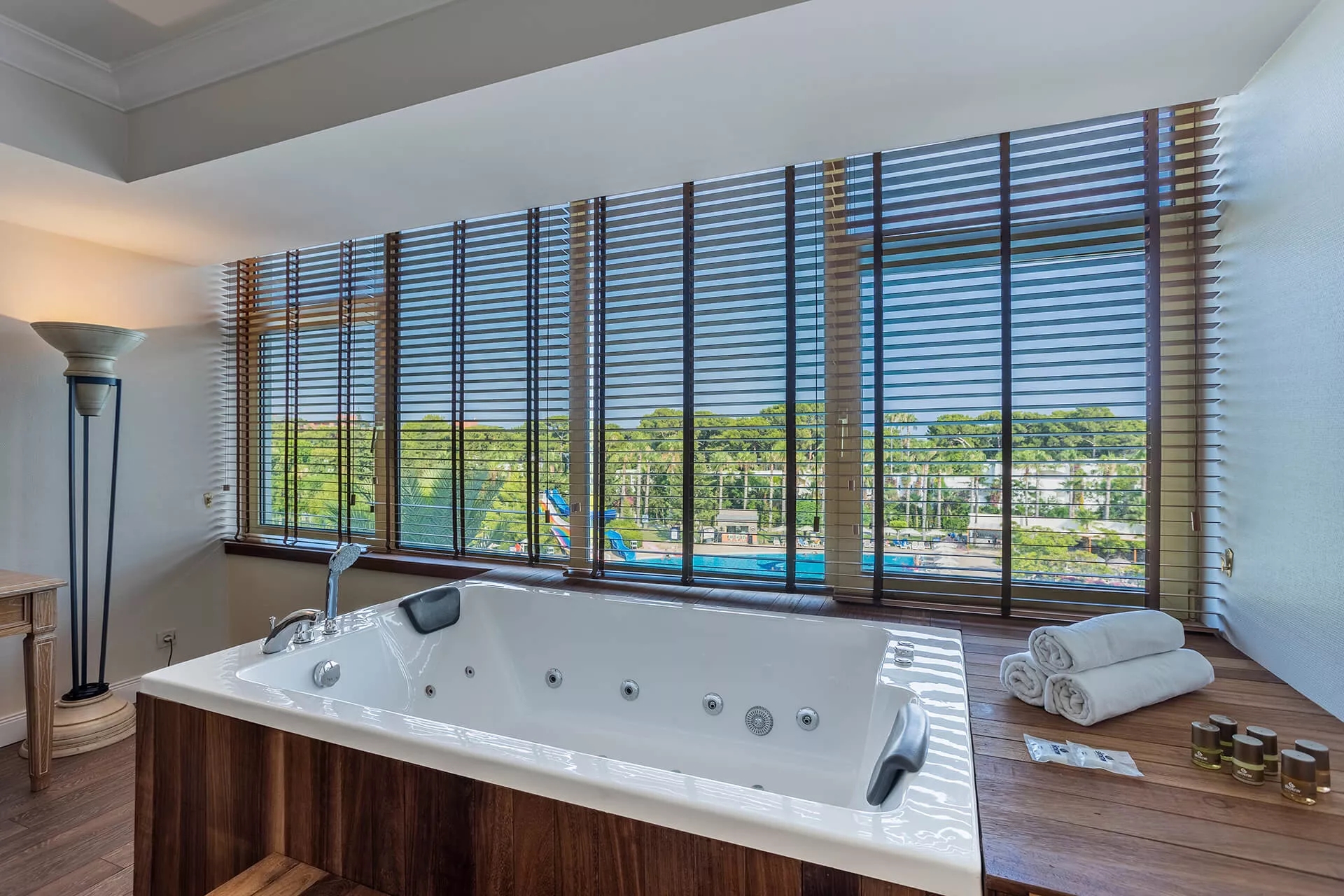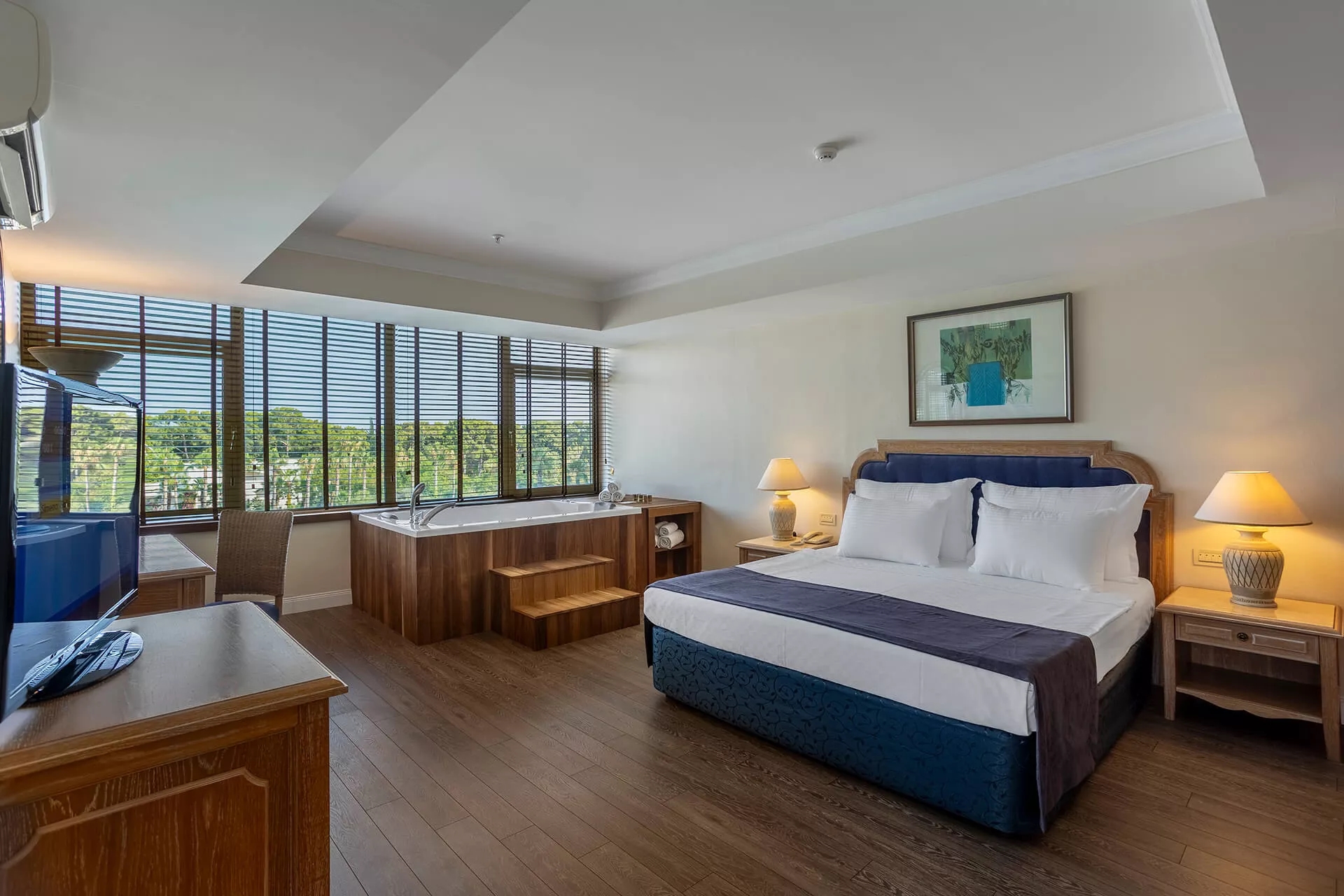 Otelimizin ana binasında yer alan king suit odalarımız ara kapılı olup toplam 4 adettir. 72 m² büyüklüğünde olan king suit odalarımızda bir adet çift kişilik yatak, jakuzi, oturma grubu, 1 banyo, 1 wc bulunmaktadır.