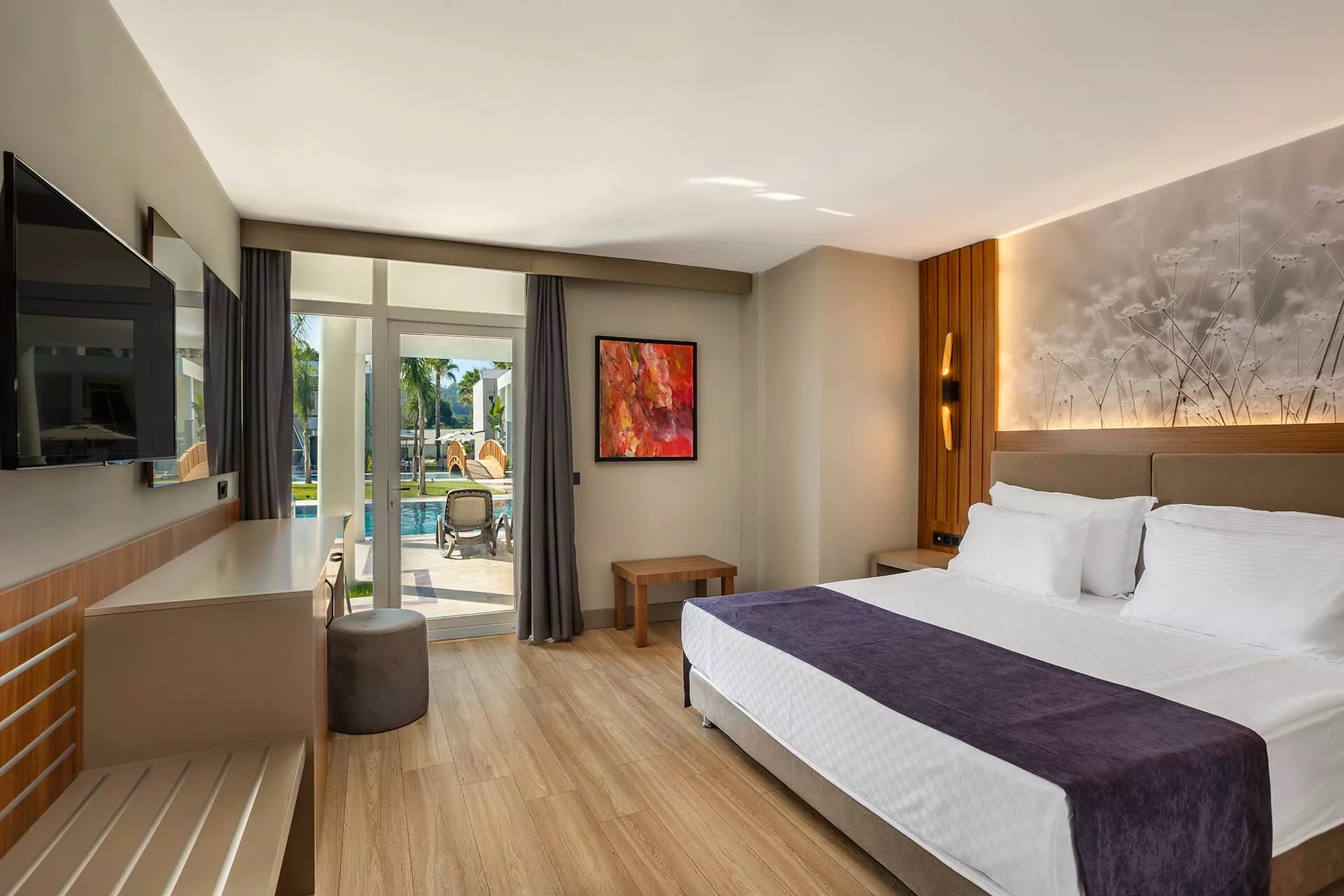 Villa Comfort Lake Swim-Up Family Suitlerimizin tamamında teras olup direkt havuza açılmaktadır. Havuz ve bahçe manzaralıdır.